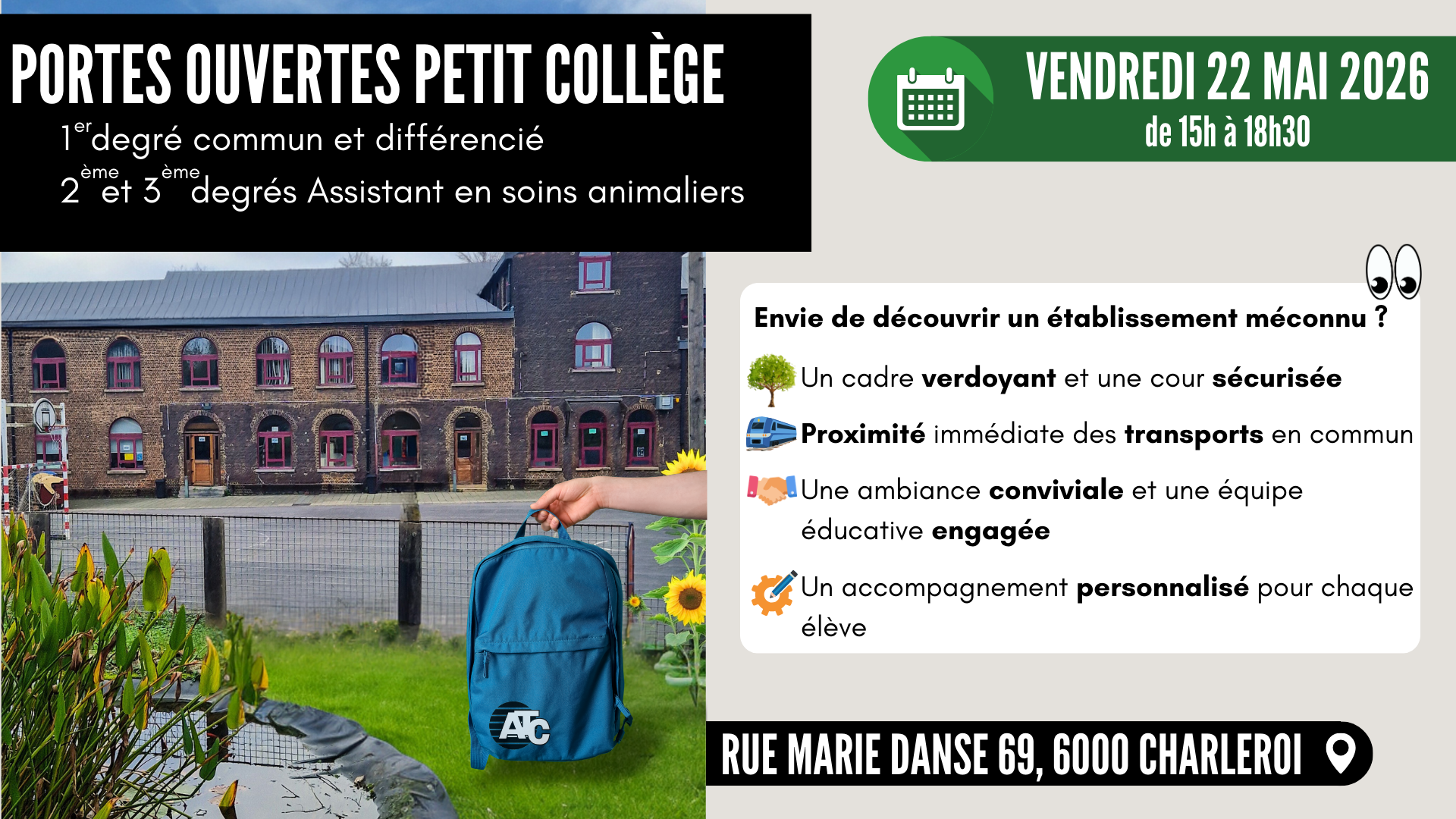 - Soit vous désirez obtenir des informations en venant directement sur place. Dans ce cas, vous pouvez venir sans rendez-vous, au Grand Collège (Grand’Rue, 185 à Charleroi).